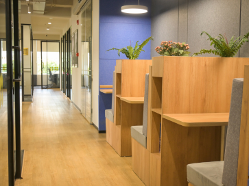 Natural lighting and open layouts create a refreshing and positive work environment, reducing stress and boosting creativity.
