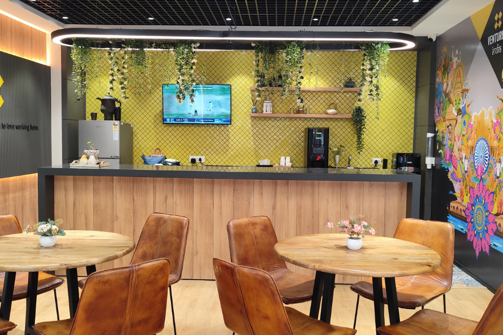 The café at Venture X is a cozy and vibrant space to recharge and refuel. The inviting atmosphere is perfect for fostering creativity and informal discussions.